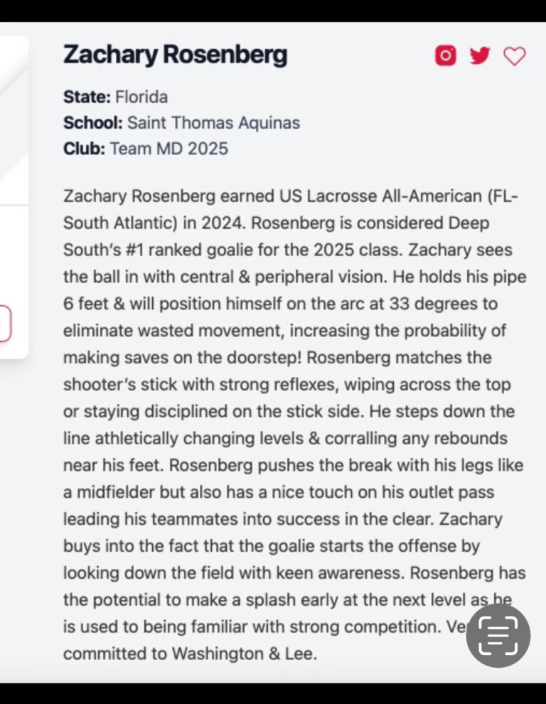 - Deep South Lax Recruits – Ranked #1 Goalie, #5 overall prospect in the South – Class of 2025